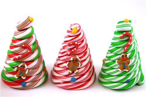 Crush a handful of peppermint candy canes. Use a Christmas tree candy mold and place the peppermints in the bottom. Cover with white, melted chocolate. When hardened, remove from mold and place in a mini tub filled with red and green M&M’s.