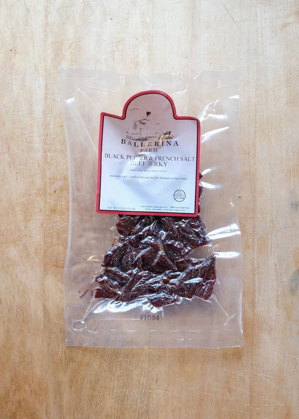 Protein doesn’t always come with packaging you’re proud to carry. But Ballerina Farm’s Beef Jerky ($12) changes that. Made from Berkshire beef - a heritage breed known for its tenderness - and seasoned with Black Pepper & French Salt or Garlic & Herb, this jerky is both flavorful and filling.