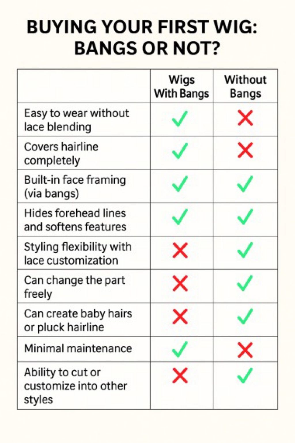 Buying your first wig is exciting because the wig you choose will switch your style and transform your look. No pressure because we know you got this, you just need to pick a wig that you feel comfortable and confident in. The very first thing you will notice when picking a wig is that some wigs come with bangs while others don’t. Now, don’t underestimate this small detail because the presence or absence of bangs can completely alter the vibe of a wig.