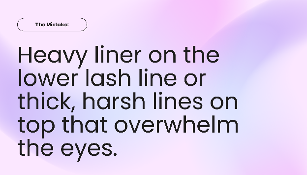 As we age, our eyes can appear smaller, and thick eyeliner only exaggerates that. Liner placed too low on the bottom lid can also cast shadows, emphasizing under-eye circles or puffiness.