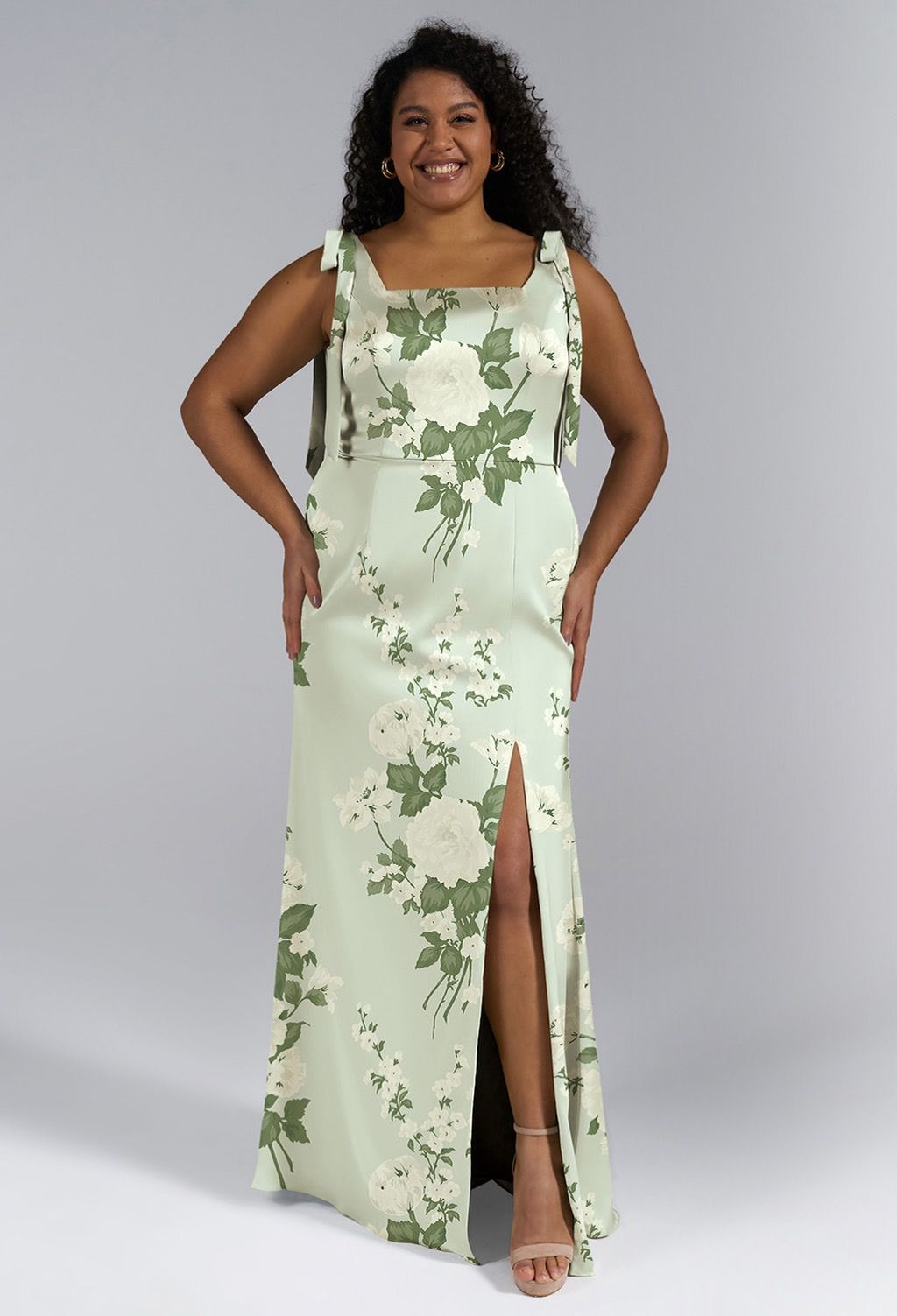 The Natalie dress in sage green channels classic garden party elegance with a modern twist. Crafted from luxurious satin, its mermaid silhouette hugs the body while flaring gracefully at the hem for dramatic effect. The square neckline lends structure, framing the collarbone with poise and sophistication. Satin’s inherent sheen adds depth and richness, capturing light as the wearer moves through ceremony spaces or outdoor receptions.