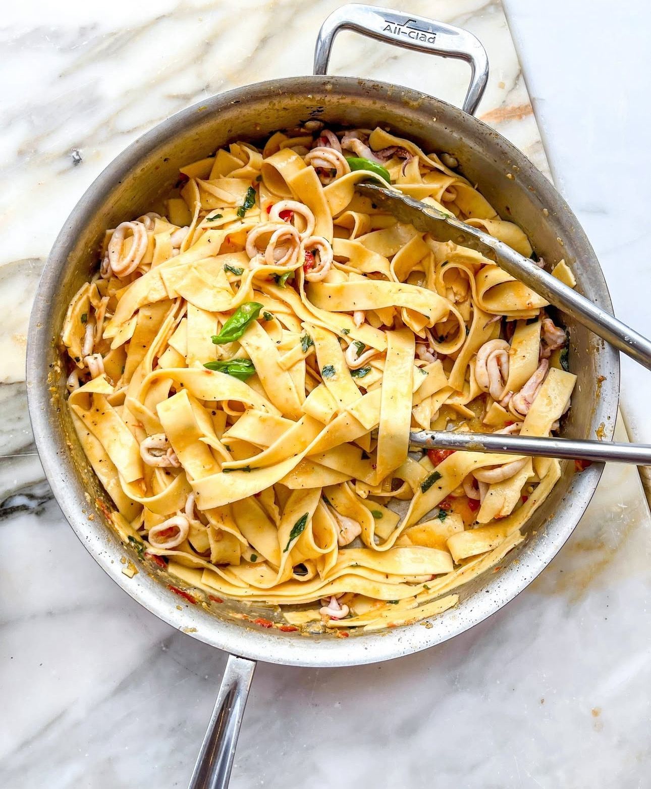 3. Creamy Sriracha Pasta with Shrimp or Squid